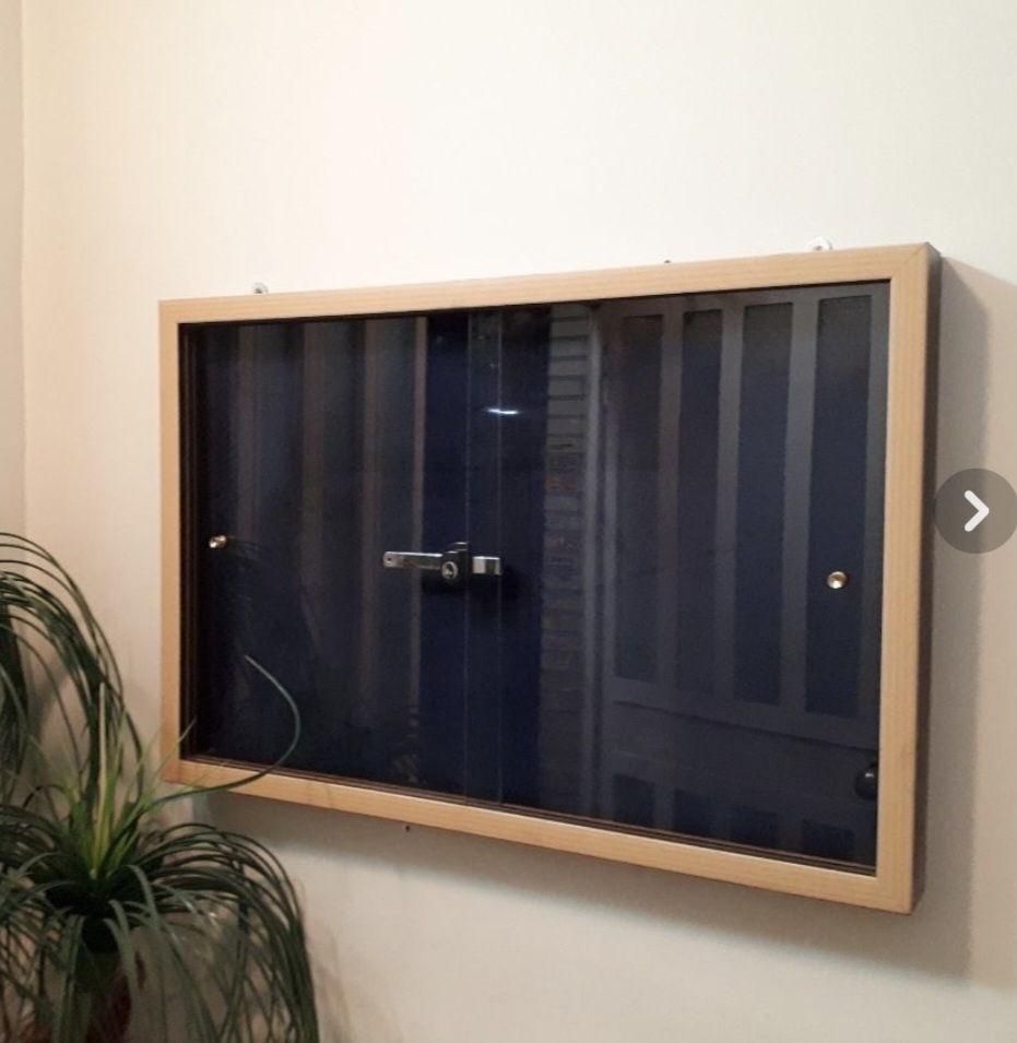 تابلو اعلانات کشویی با شیشه و قفل قاب ام دی اف 60*40 افرند